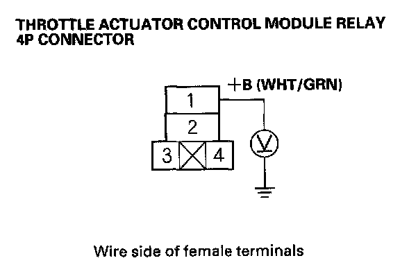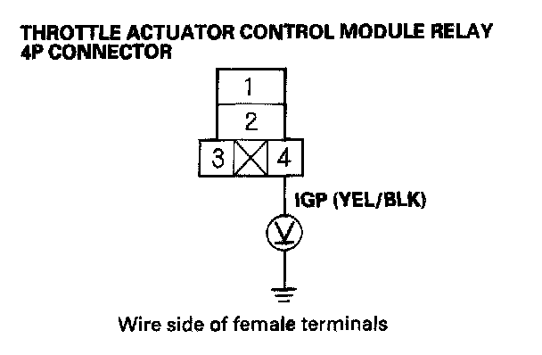 17. Measure voltage between throttle actuator control module relay 4P connector terminal No.1 and body ground.