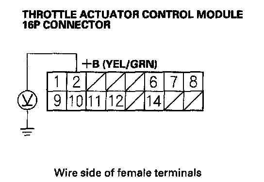 21. Measure voltage between throttle actuator control module 16P connector terminal No.2 and body ground.