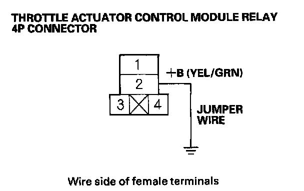 32. Connect throttle actuator control module relay 4P connector terminal No.2 to body ground with a jumper wire.