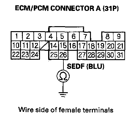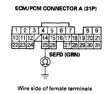 38. Check for continuity between ECM/PCM connector terminal A25 and body ground.