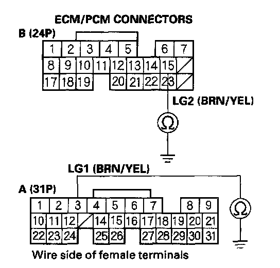 48. Disconnect ECM/PCM connector B (24P) and A (31P).