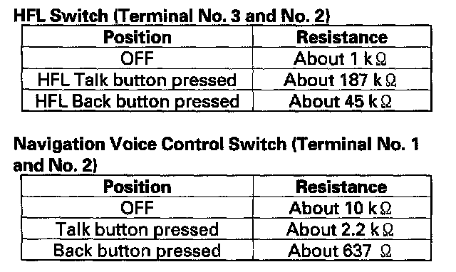 HFL Switch/HFL-Voice Control Switch Test/ReplacementNOTE: Information marked with asterisk ( * ) applies to the switch with navigation system.