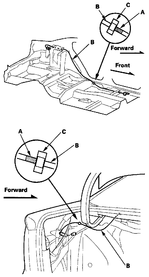 7. Install the opener cable in the reverse order of removal, and note these items: