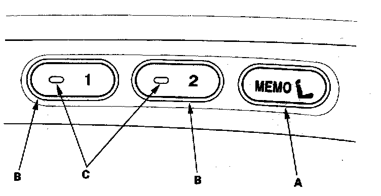 2. Press and hold the MEMO button (A) and both position buttons (B) at the same time.