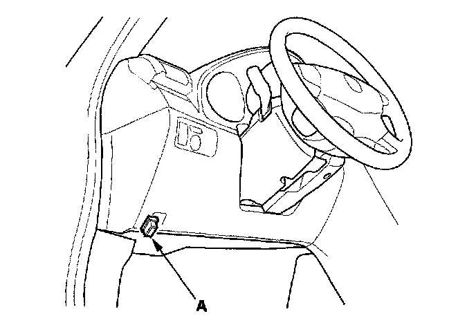 2. With the ignition switch OFF, connect the HDS to the 16P date link connector (DLC) (A) under the driver's side of the dashboard.