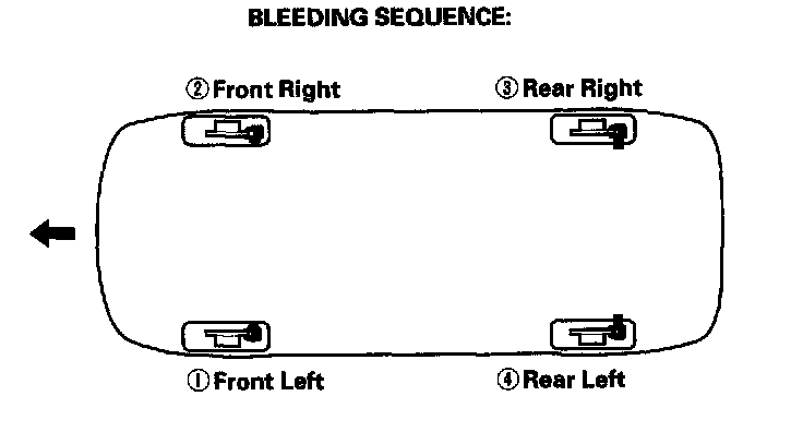 5. Repeat the procedure for each caliper until no air bubbles are in the fluid. Bleed the calipers in the sequence shown.