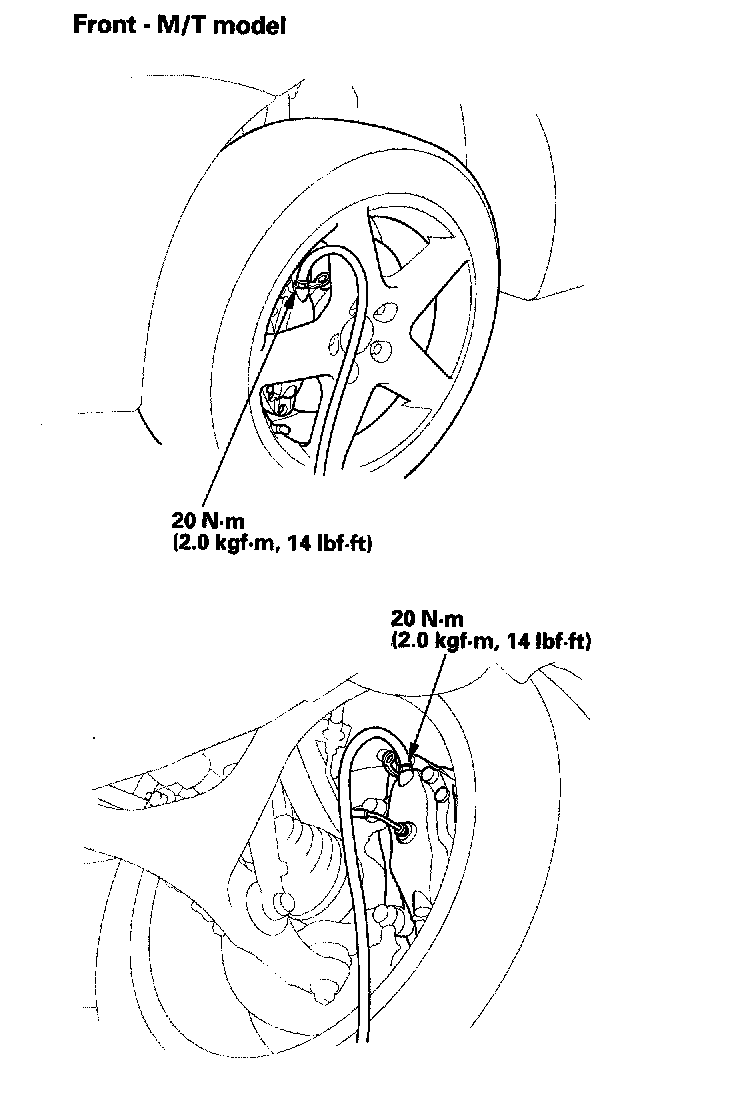 ^ On M/T model, bleed the outside piston of the front caliper first, then bleed the inside piston.