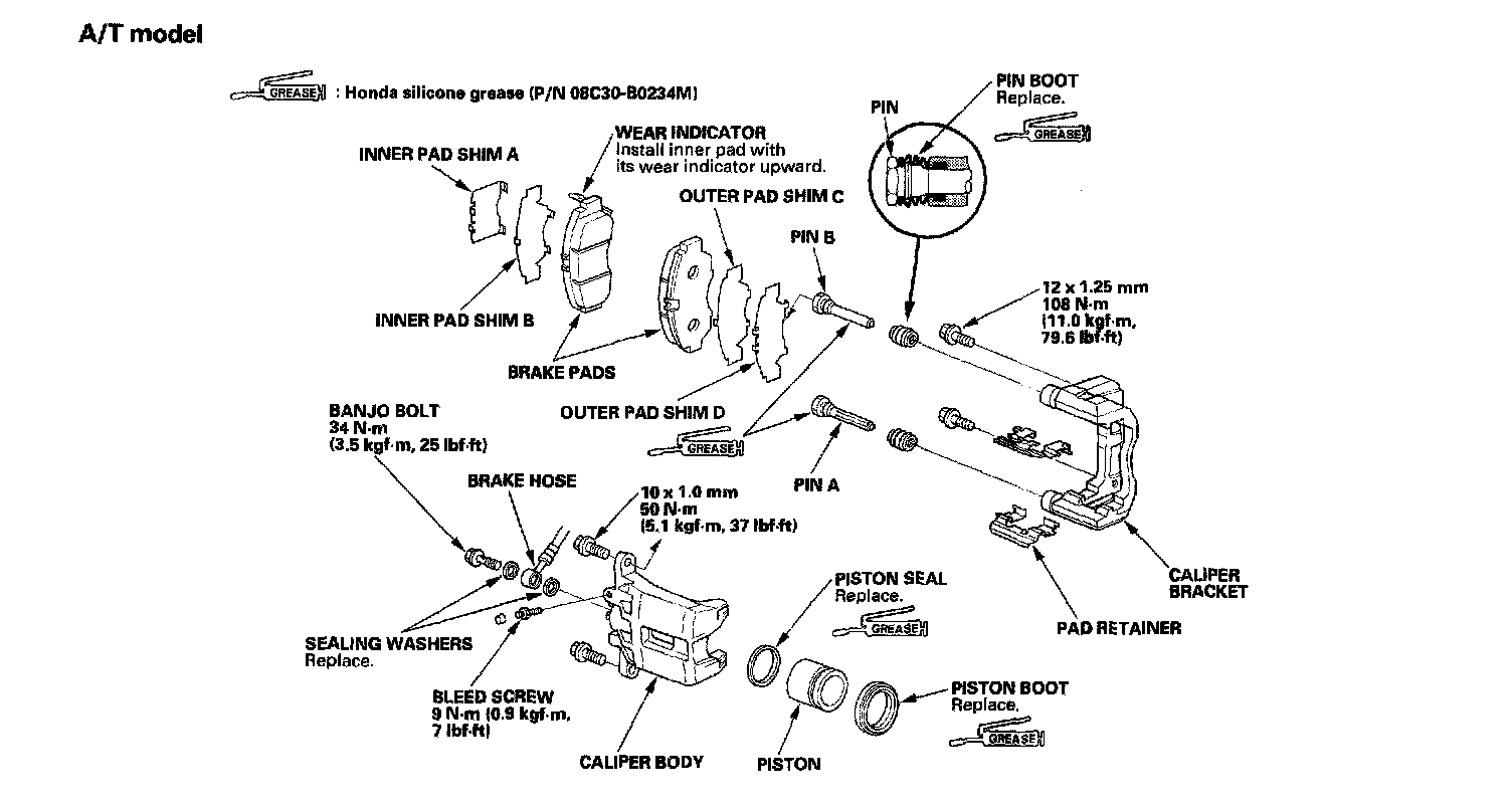 Front Brake Caliper OverhaulCAUTION: Frequent inhalation of brake pad dust, regardless of material composition, could be hazardous to your health.