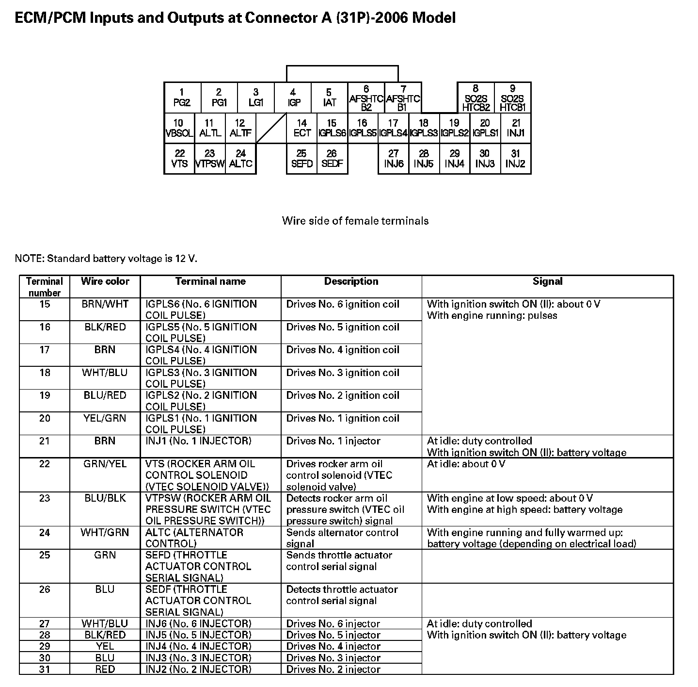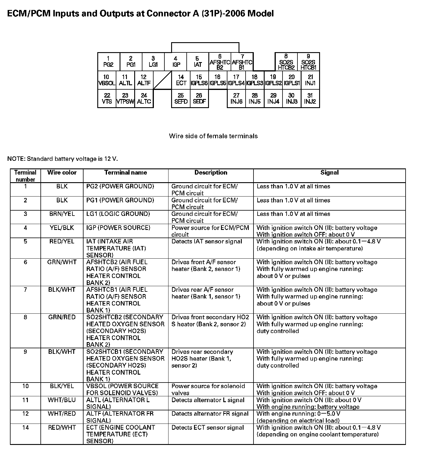 ECM/PCM Inputs And Outputs At Connector A (31P) Part 2: