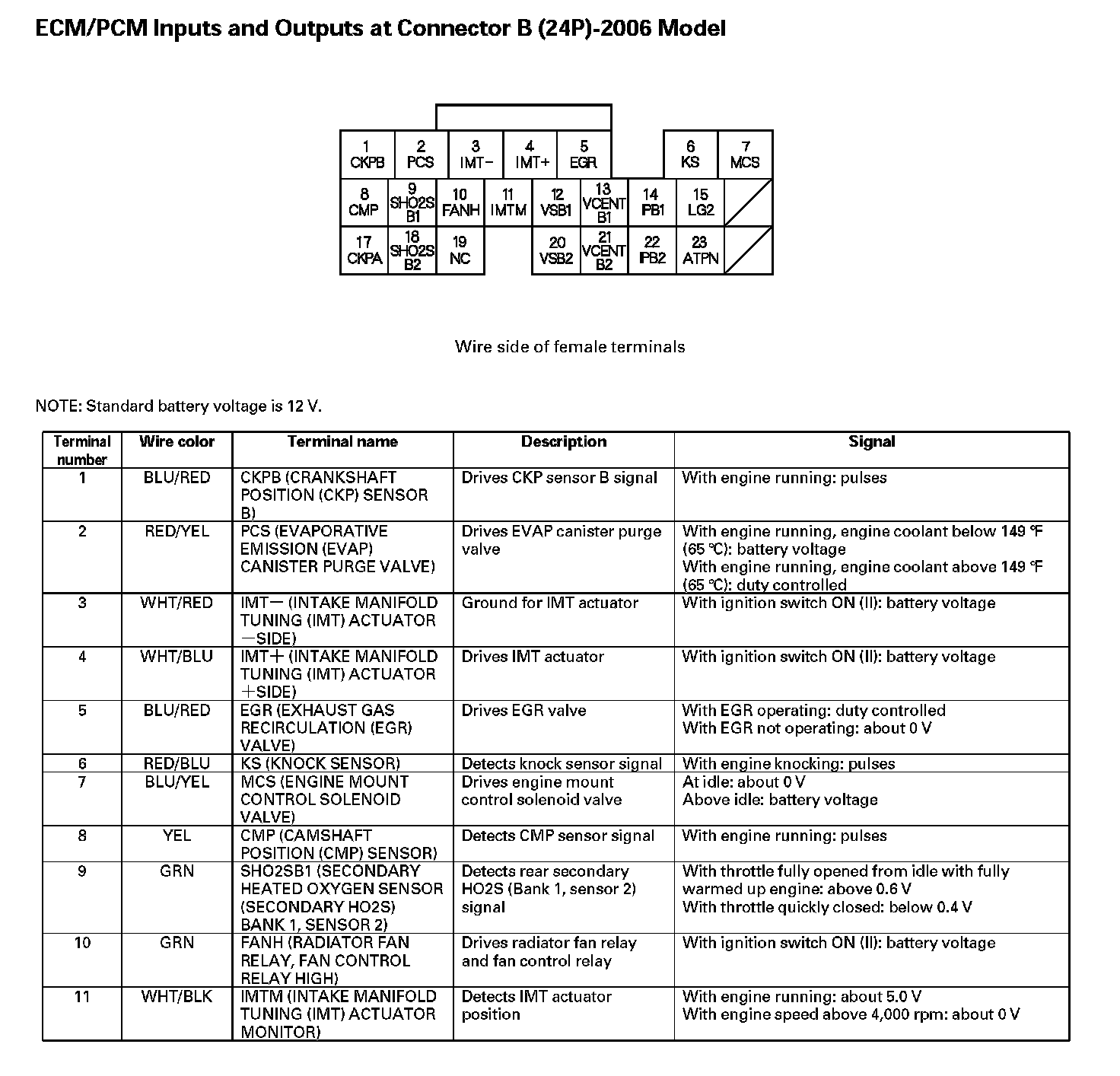 ECM/PCM Inputs And Outputs At Connector B (24P) Part 2: