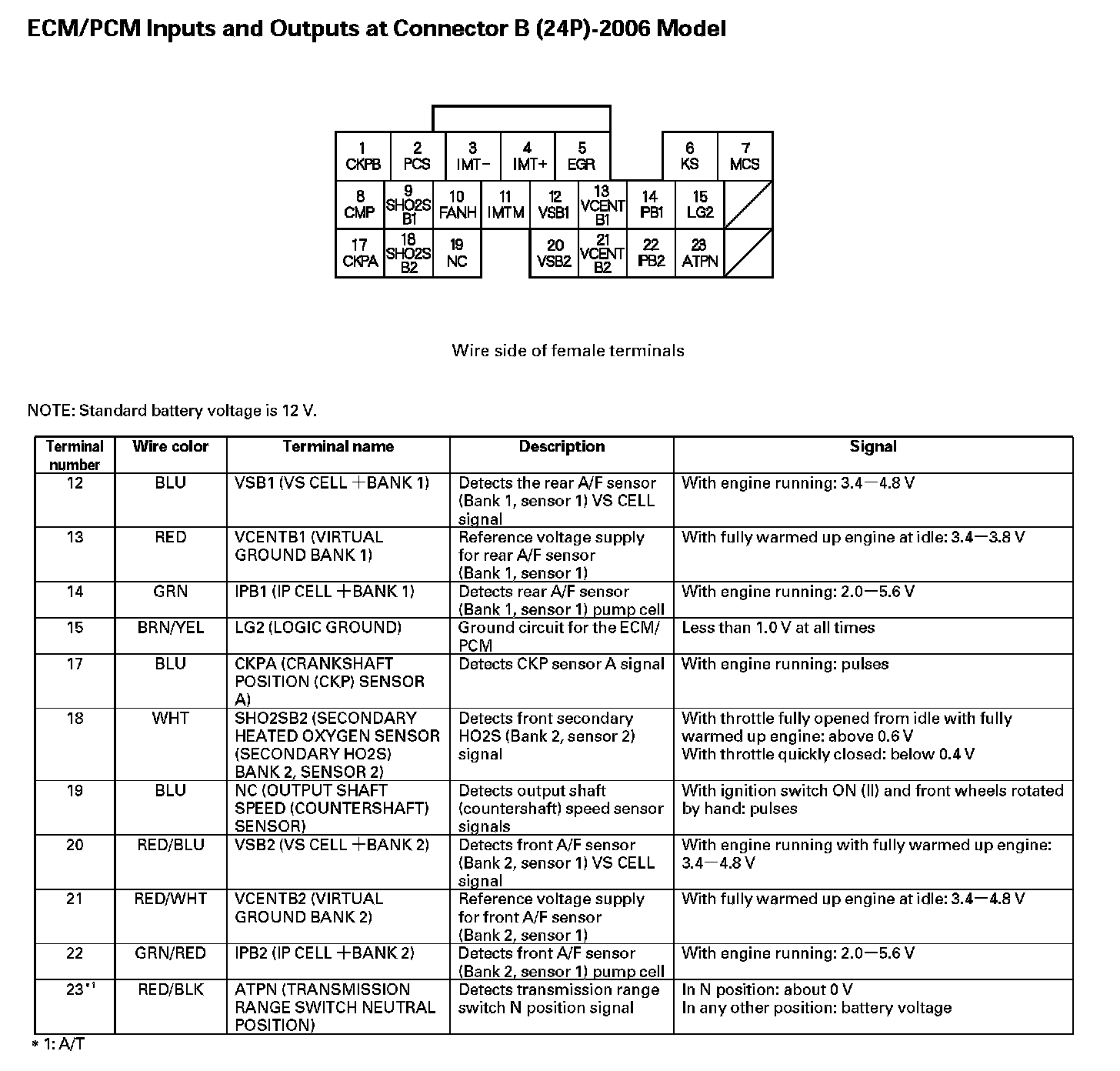 ECM/PCM Inputs And Outputs At Connector B (24P) Part 1: