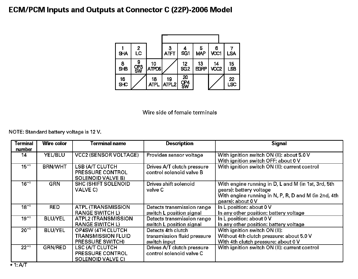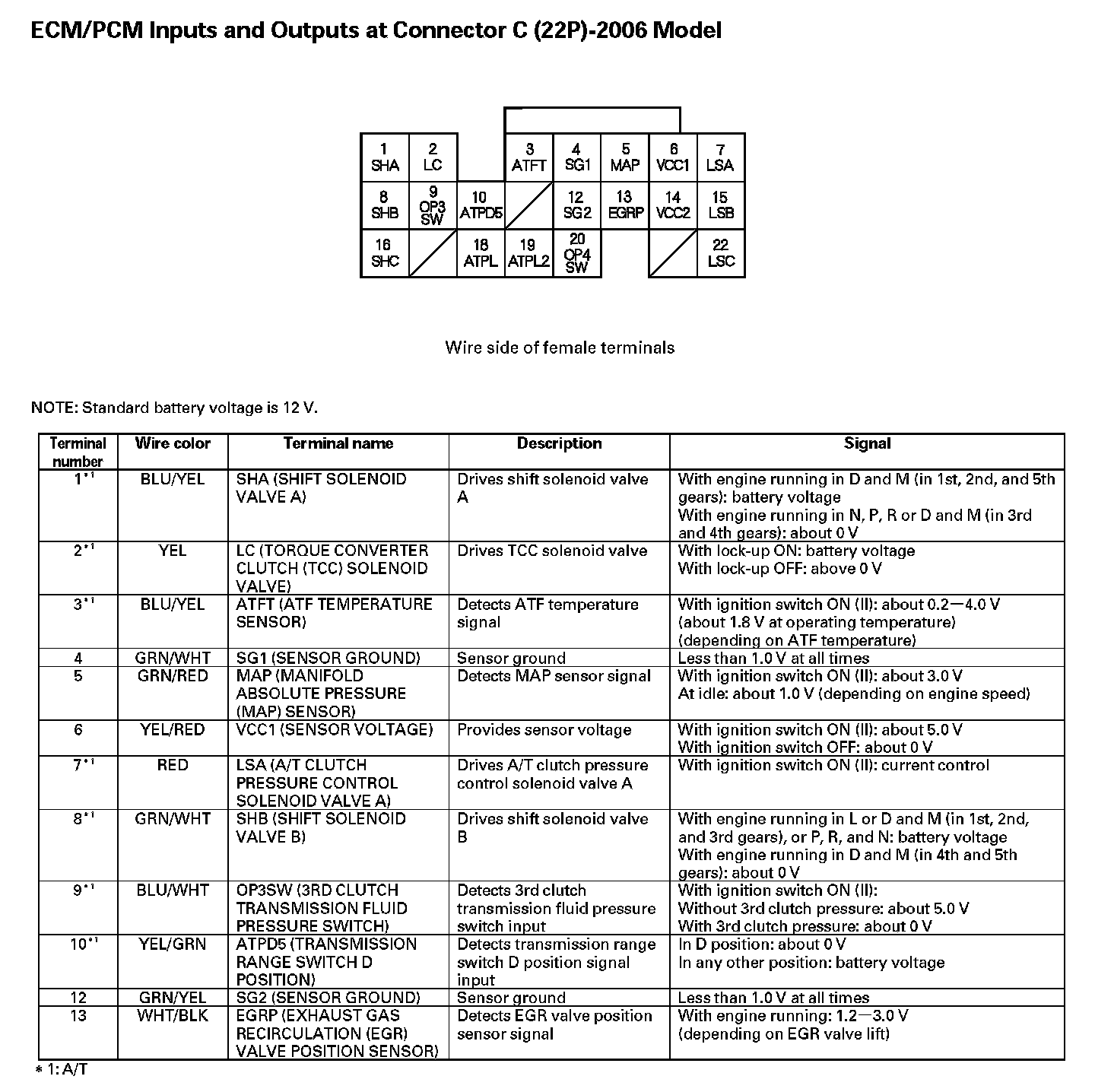 ECM/PCM Inputs And Outputs At Connector C (22P) Part 1: