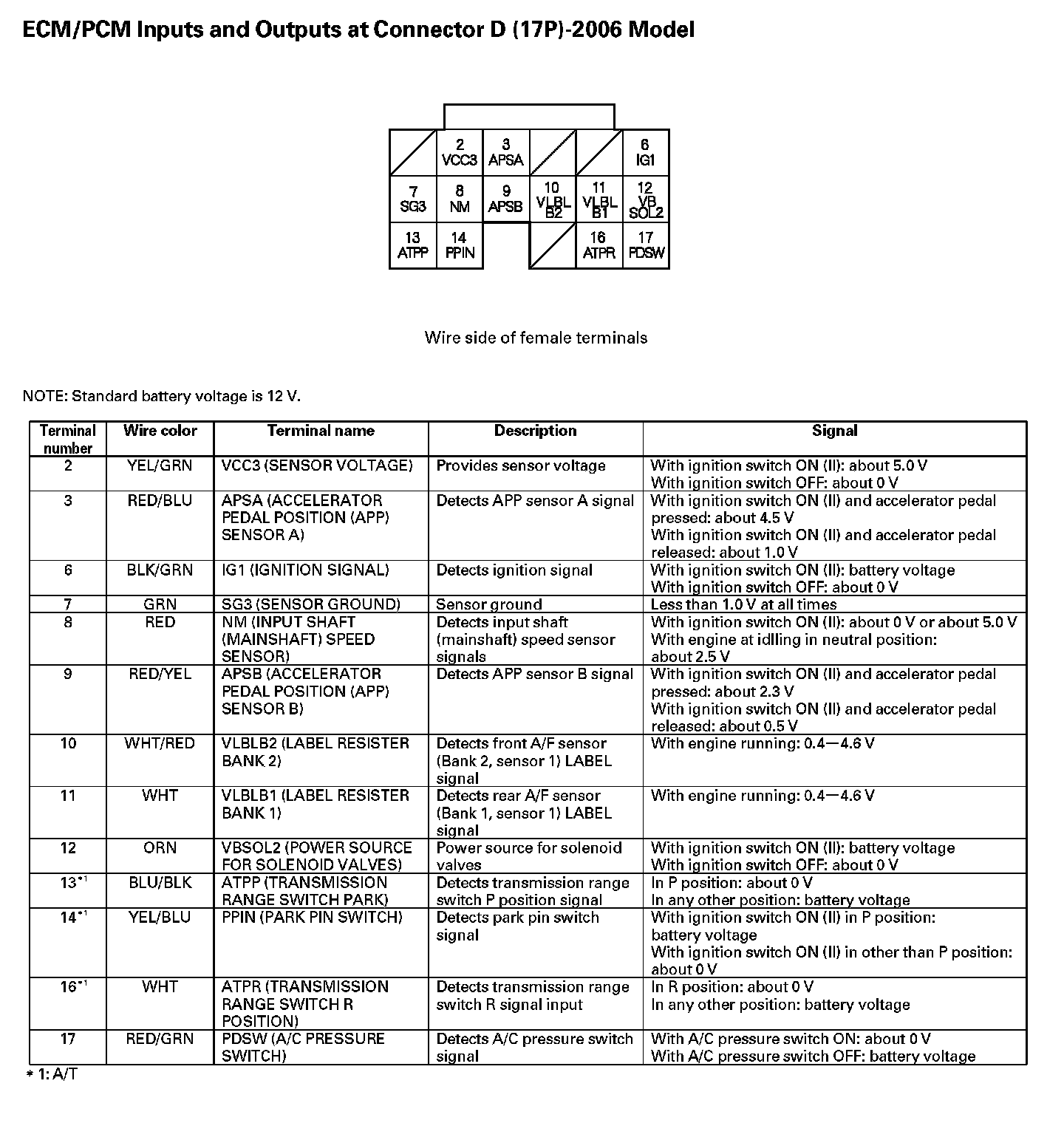 ECM/PCM Inputs And Outputs At Connector D (17P):