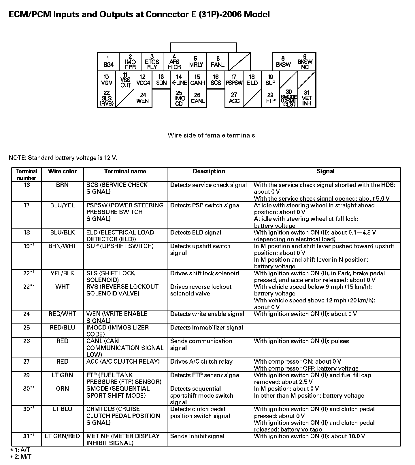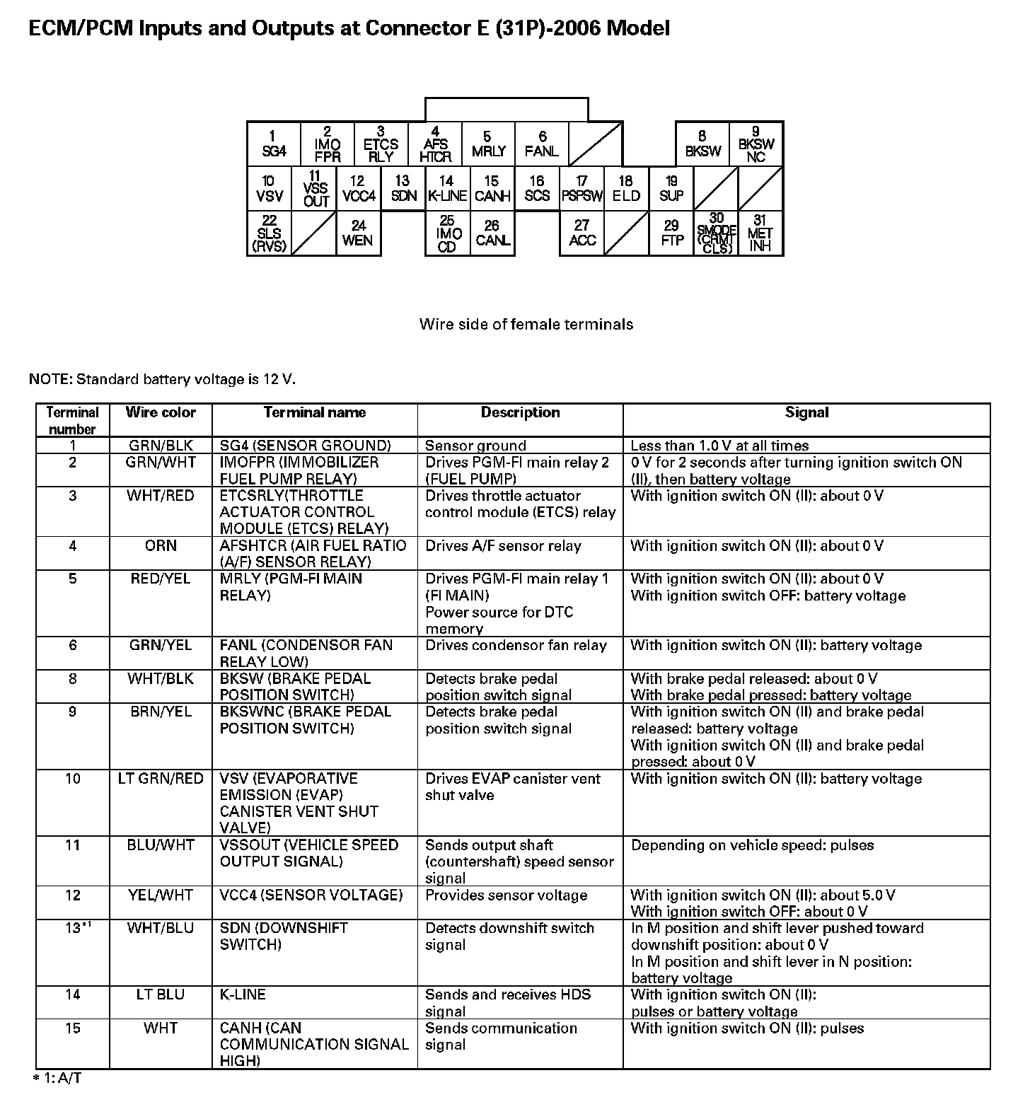 ECM/PCM Inputs And Outputs At Connector E (31P) Part 1:
