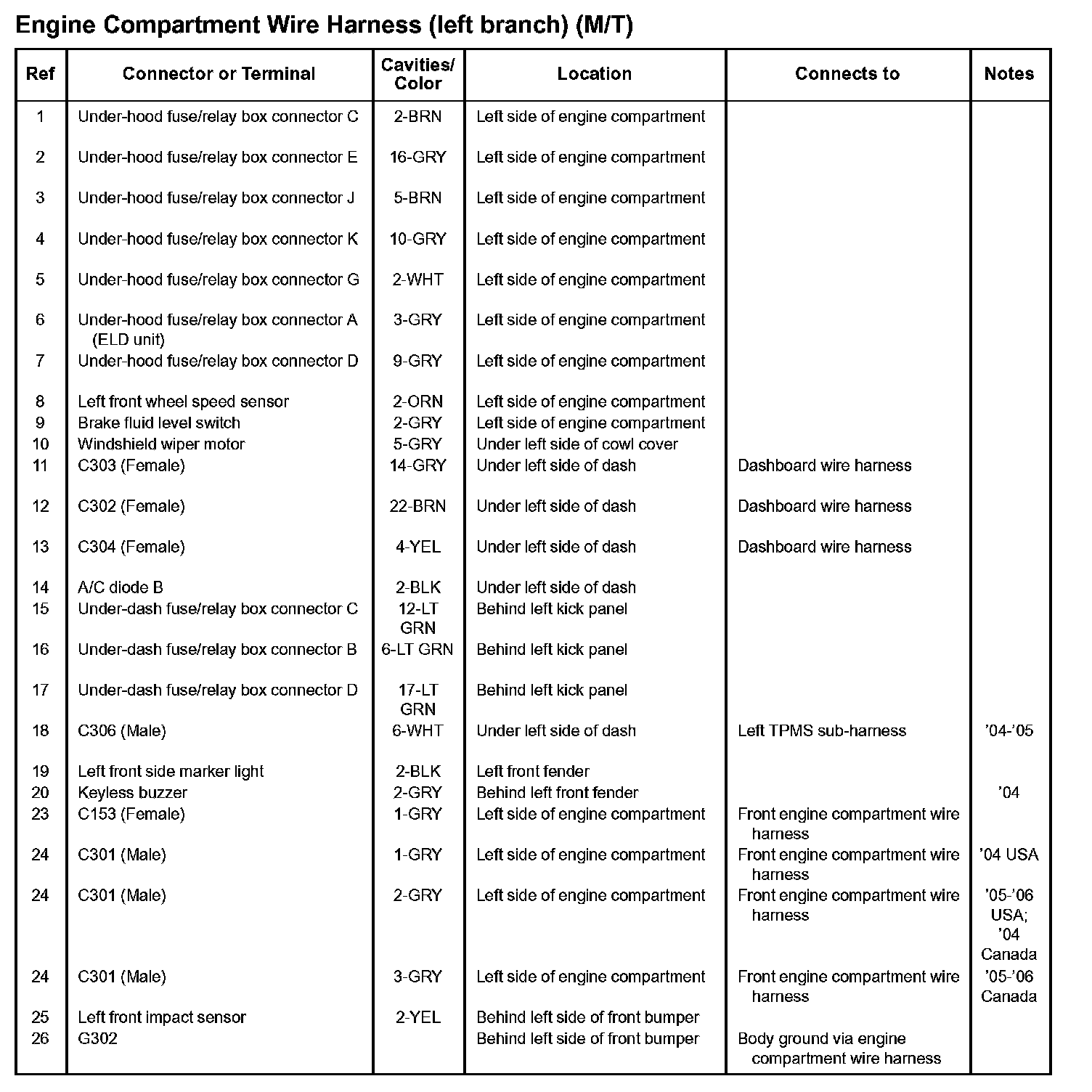 Connector ID By Location On Harness