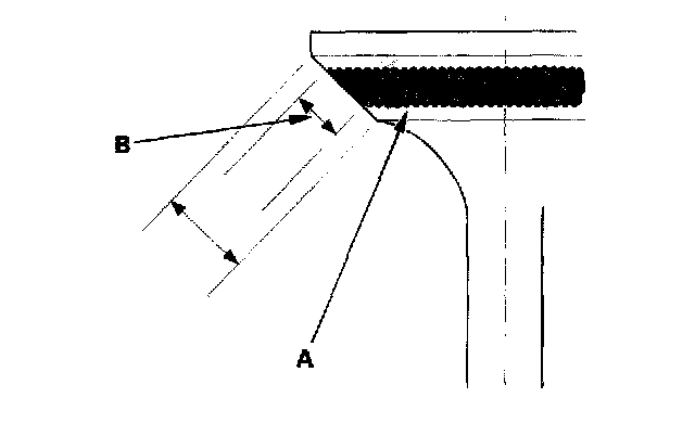 7. The actual valve seating surface (B), as shown by the blue compound, should be centered on the seat.