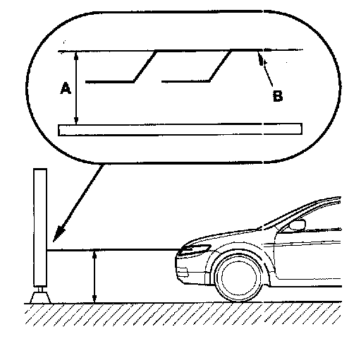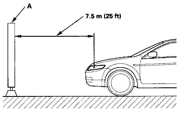 2. Park the vehicle 25 ft (7.5 m) away from a wall or a screen (A).