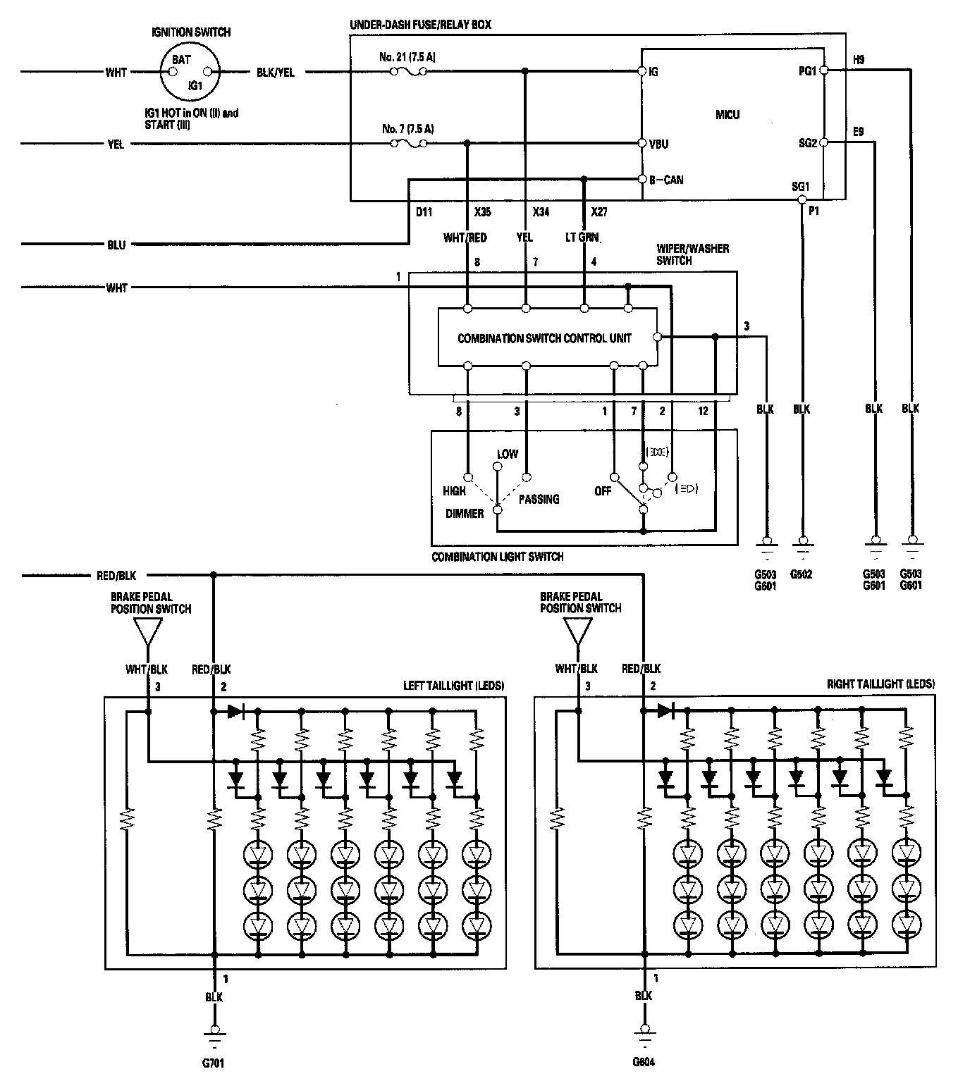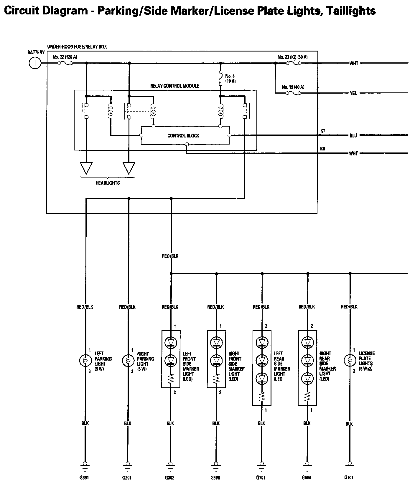 Parking/Side Marker/License Plate Lights, Taillights Circuit Diagram - Part 1: