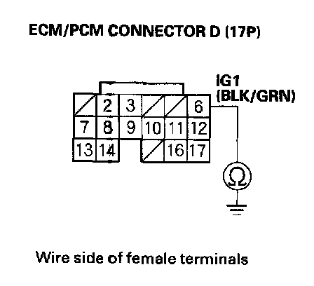 16. Check for continuity between ECM/PCM connector terminal E16 and body ground.