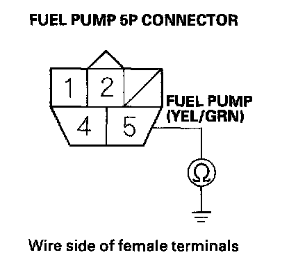 43. Check for continuity between fuel pump 5P connector terminal No.5 and body ground.