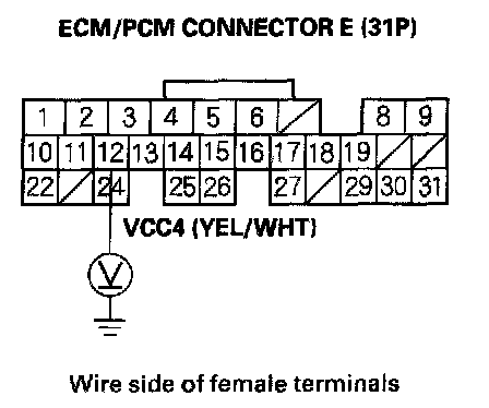 86. Measure voltage between ECM/PCM connector terminal E12 and body ground.