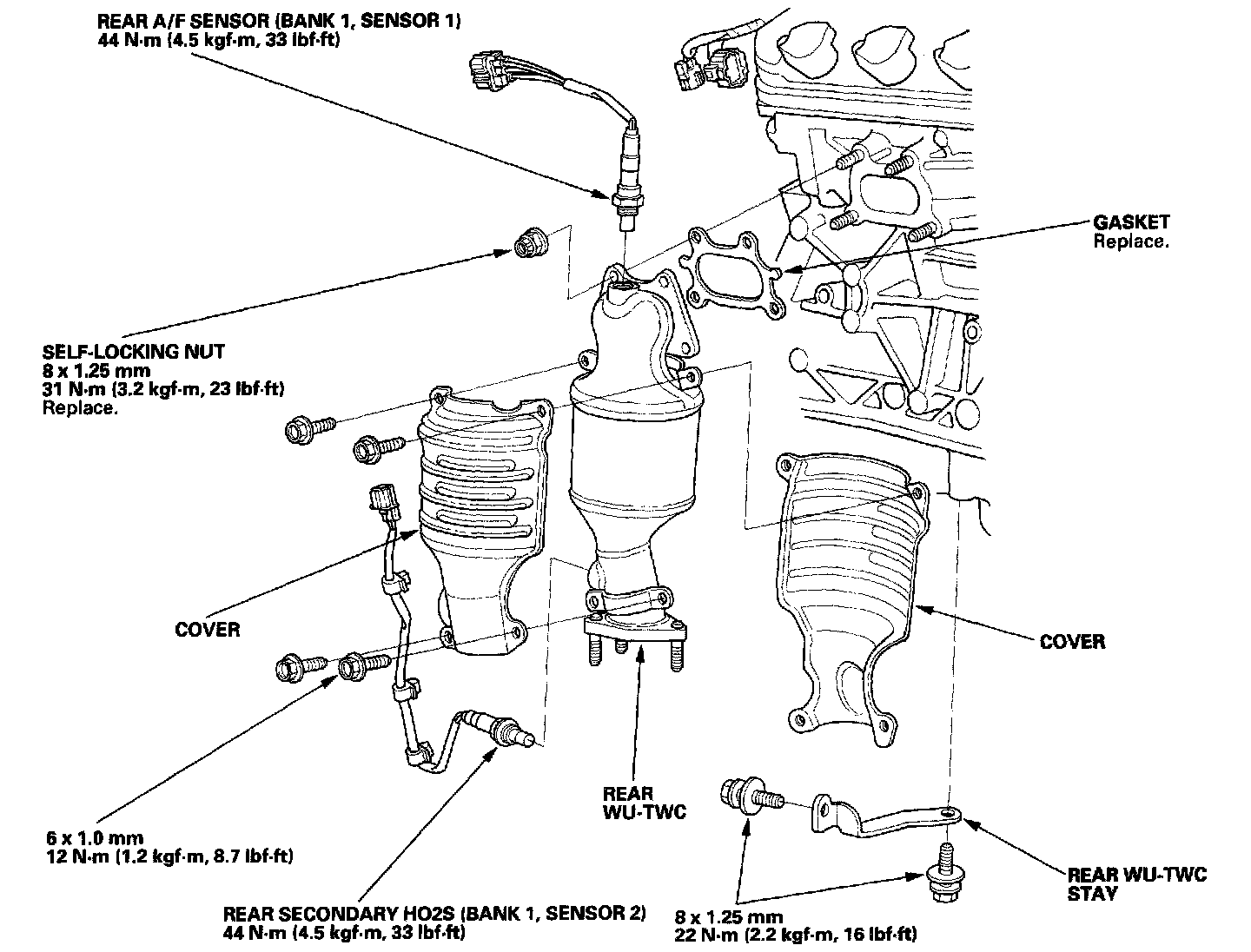 2. Disconnect the front air fuel ratio (A/F) sensor connector and front secondary heated oxygen sensor (secondary HO2S) connector.