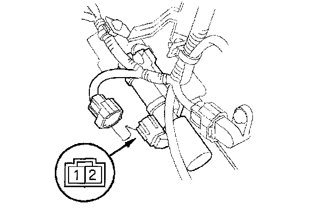 18. Connect the battery negative terminal to A/T clutch pressure control solenoid valve C connector terminal No. 2, and connect the battery positive terminal to the terminal No. 1.Make sure A/T clutch pressure control solenoid valve C moves.