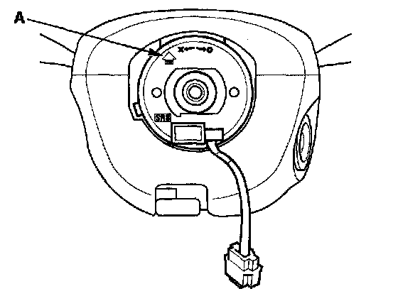 7. Align the projections on the cable reel with the holes on the steering wheel, and install the steering wheel with a new steering wheel bolt (A), then reconnect the connector.