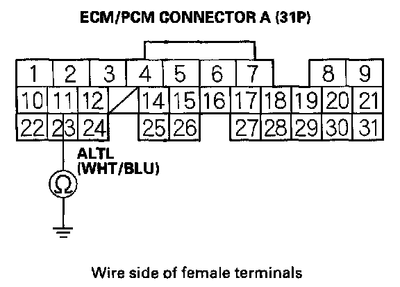 10. Check for continuity between ECM/PCM connector terminal A11 and body ground.