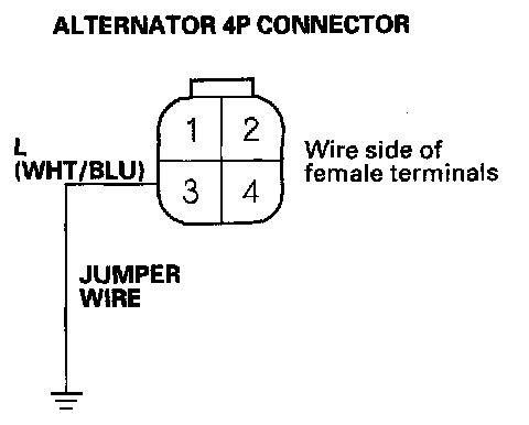 14. Connect alternator 4P connector terminal No.3 and body ground with a jumper wire.