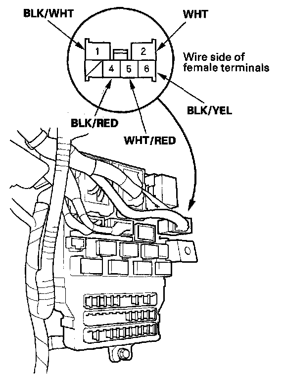 4. Disconnect the 6P connector from the driver's under-dash fuse/relay box.