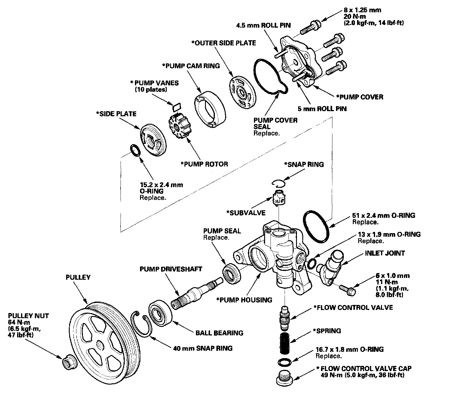 Replace the pump as an assembly if the parts indicated with asterisk (*) are worn or damaged.