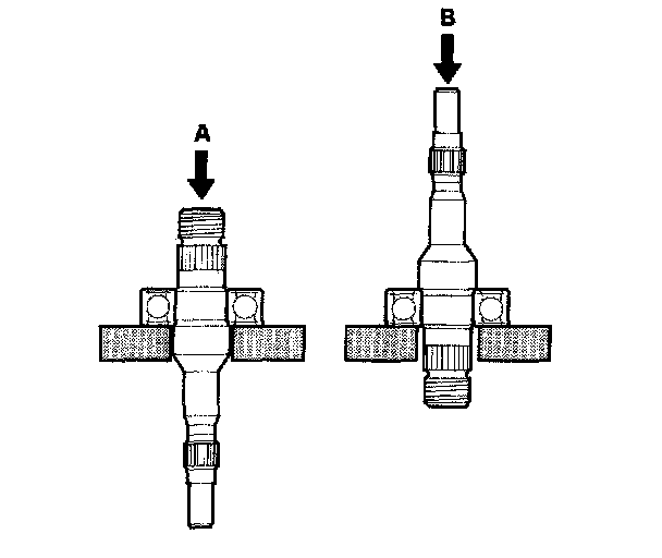 15. Inspect the ball bearing by rotating the outer race slowly. If you feel any play (axial or radial) or roughness remove the faulty ball bearing (A), and install a new one (B).