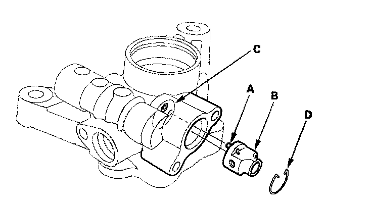 17. Align the pin (A) of the subvalve (B) with the oil passage (C) in the pump housing, and push the subvalve into place, then install the snap ring (D).