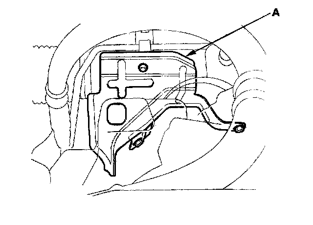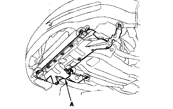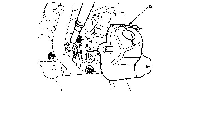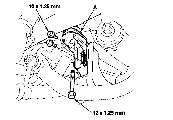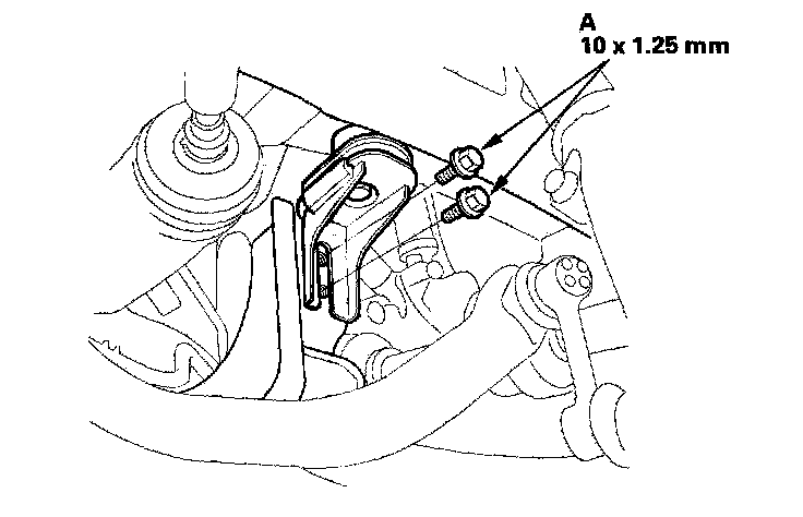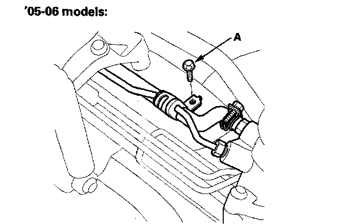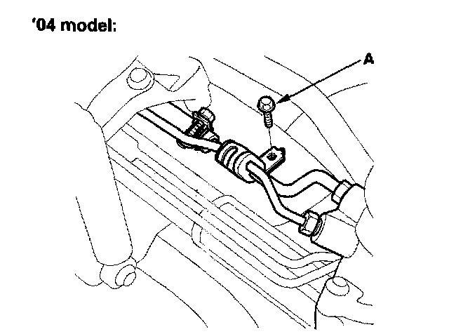 23. Remove the feed line holder mounting bolt (A) on the front suspension subframe.