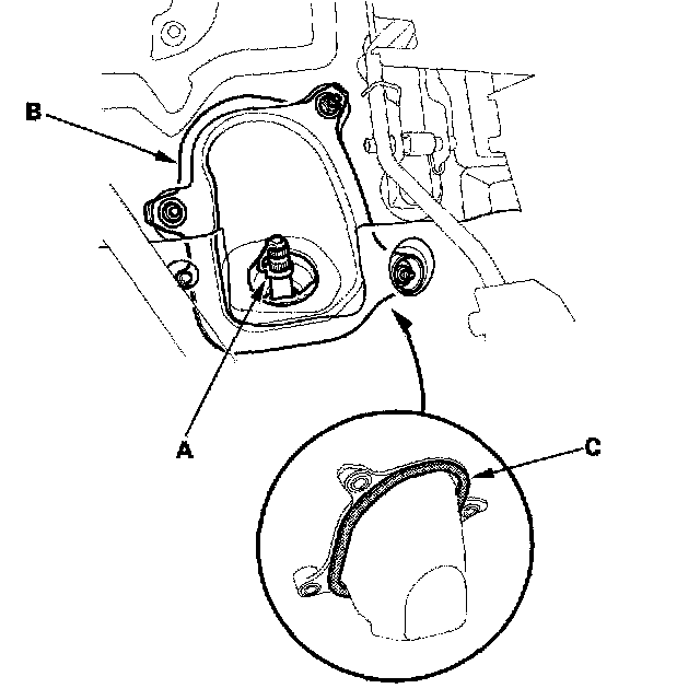 9. Remove the steering joint cover B. Be careful not to damage the mating surface on the joint cover B and pinion shaft grommet. Replace the cover seal (C) if necessary.
