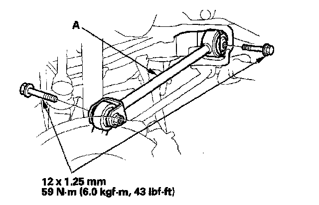 3. Remove the mounting bolts, then remove the leading arm (A).