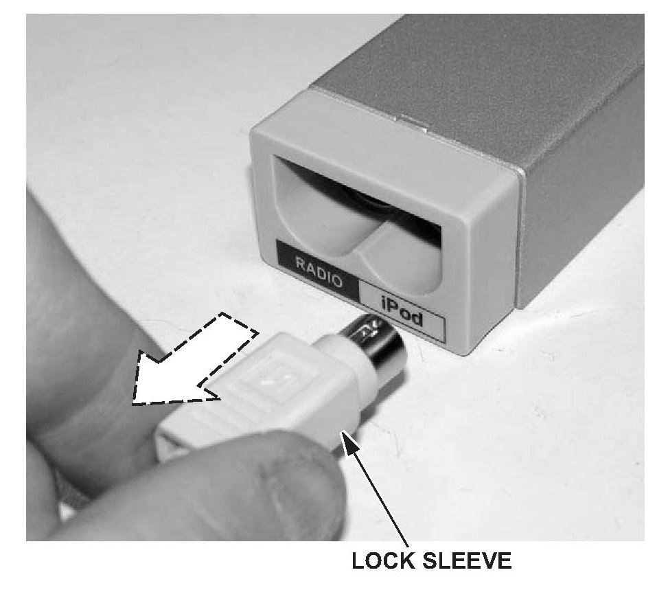 ^ Some iPod protective cases cause the Music Link iPod connector to be installed crookedly or not fully engaged. Be sure to remove the protective case before troubleshooting.