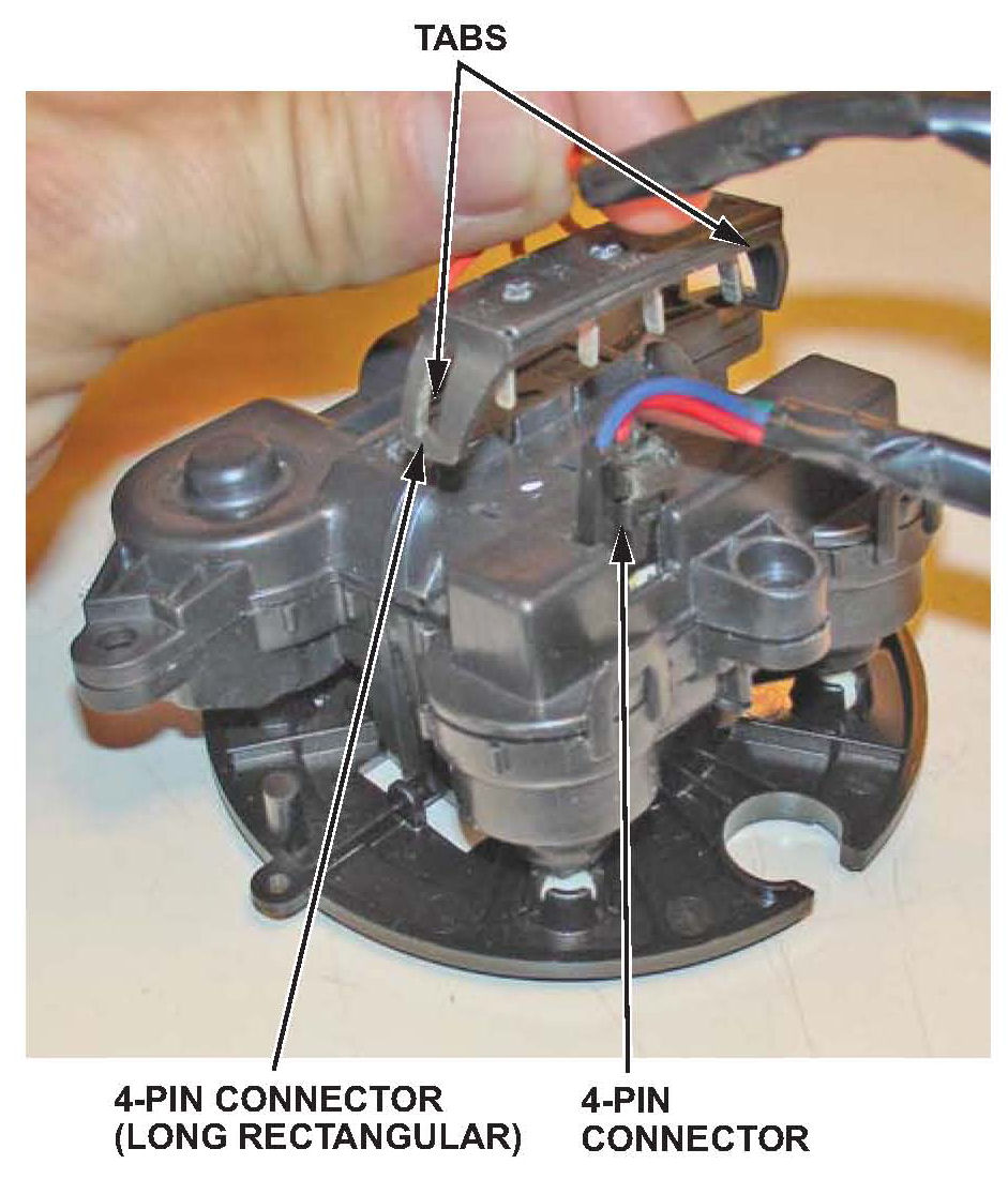 5. Disconnect the two 4P connectors on the back of the mirror actuator.