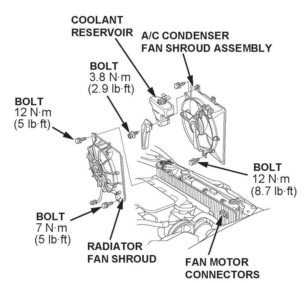 15. Reinstall the radiator fan and shroud assembly, then reinstall the A/C condenser fan and shroud assembly.