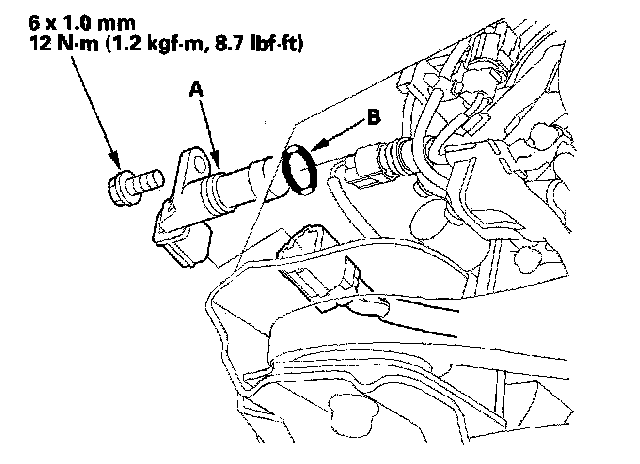 5. Install the new O-ring (B) on the input shaft (mainshaft) speed sensor, then install the input shaft (mainshaft) speed sensor in the end cover. Do not allow dust or foreign particles to enter the transmission.