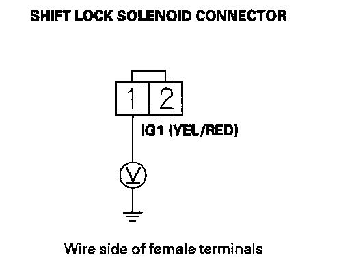 10. Measure the voltage between shift lock solenoid connector terminals while pressing the brake pedal.