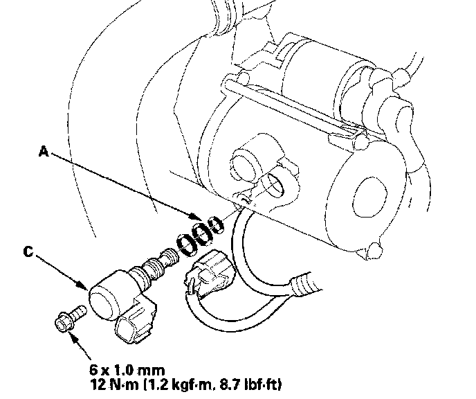 Shift Solenoid Valve C Replacement1. Disconnect the shift solenoid valve C connector, and remove shift solenoid valve C.