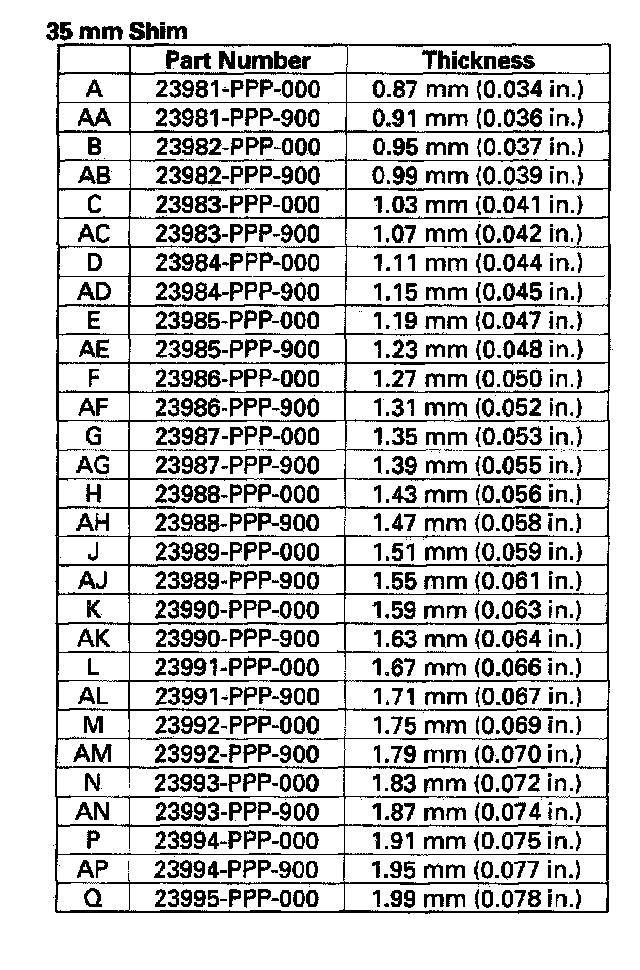 18. If a new 35 mm shim was selected in step 16, install the shim, and recheck the clearance.