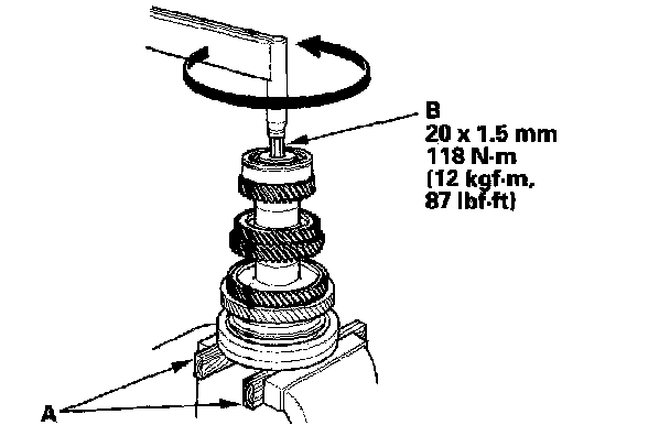22. Tighten the new 20 mm special bolt (B) (left-hand threads).