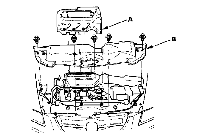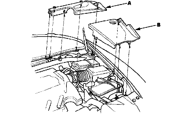 6. Remove the intake manifold cover (A) and the bulkhead cover (B).