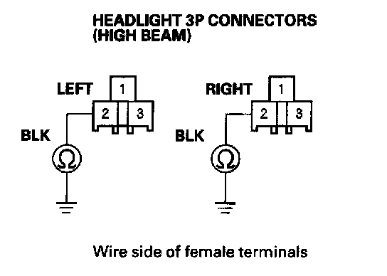 12. Check for continuity between the No. 2 terminal of the headlight (high beam) 3P connectors and body ground.