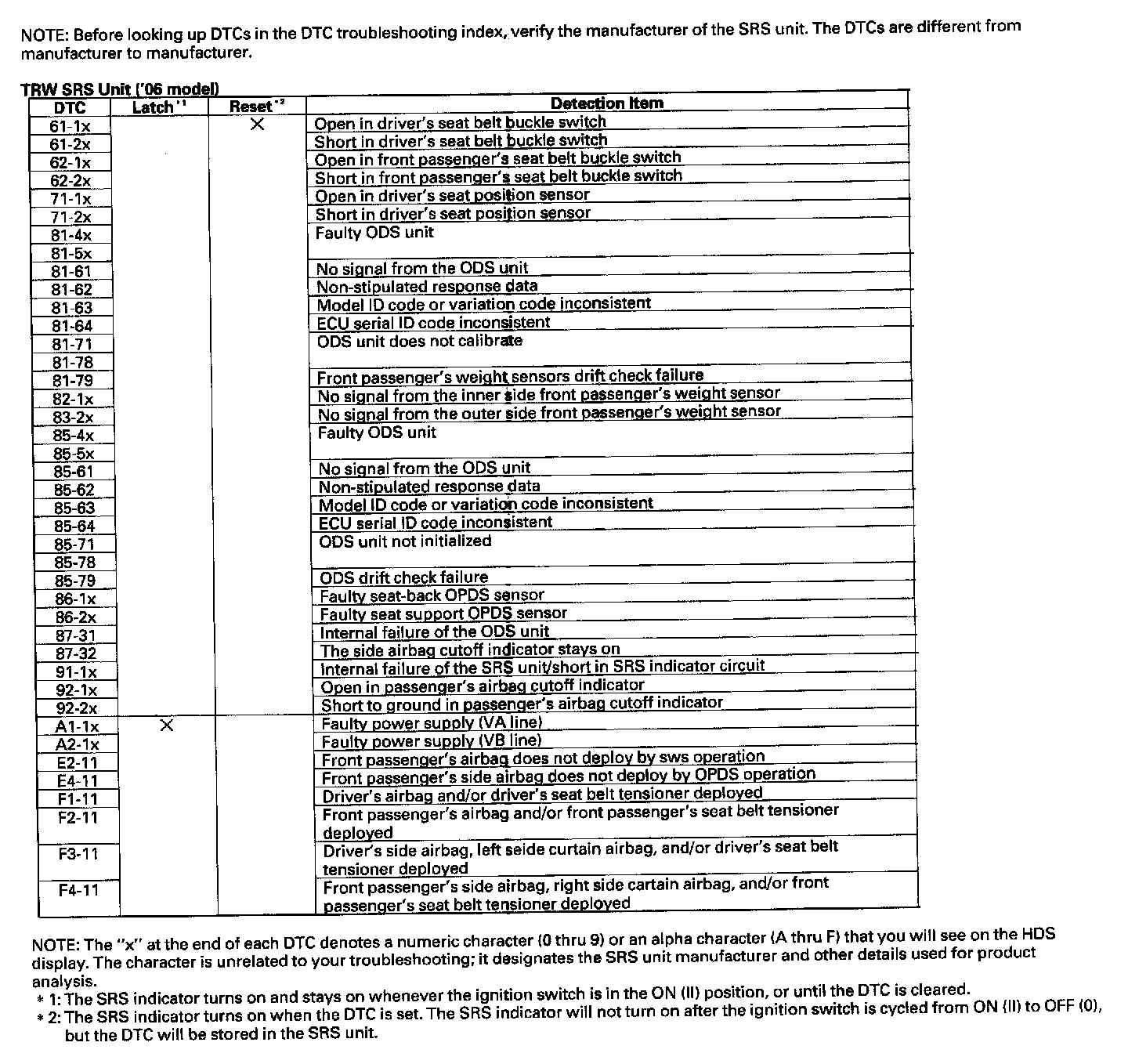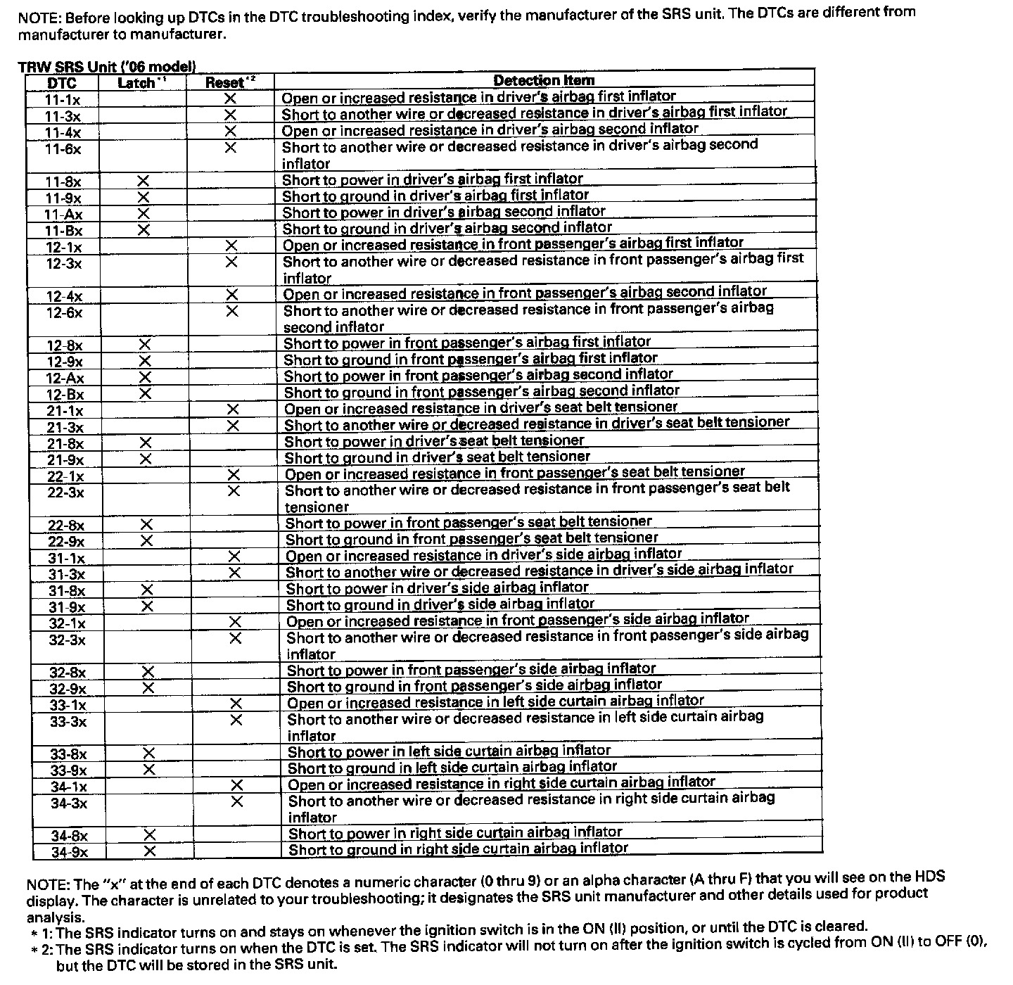 DTC List - Air Bag System