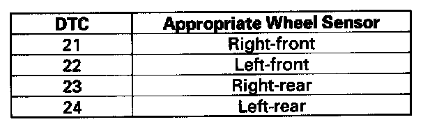 4. Check the appropriate wheel sensor/encoder (see table).
