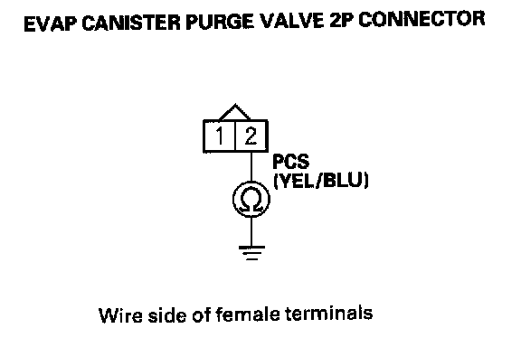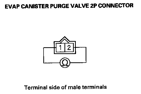 23. Measure resistance between EVAP canister purge valve 2P connector terminals No. 1 and No. 2.